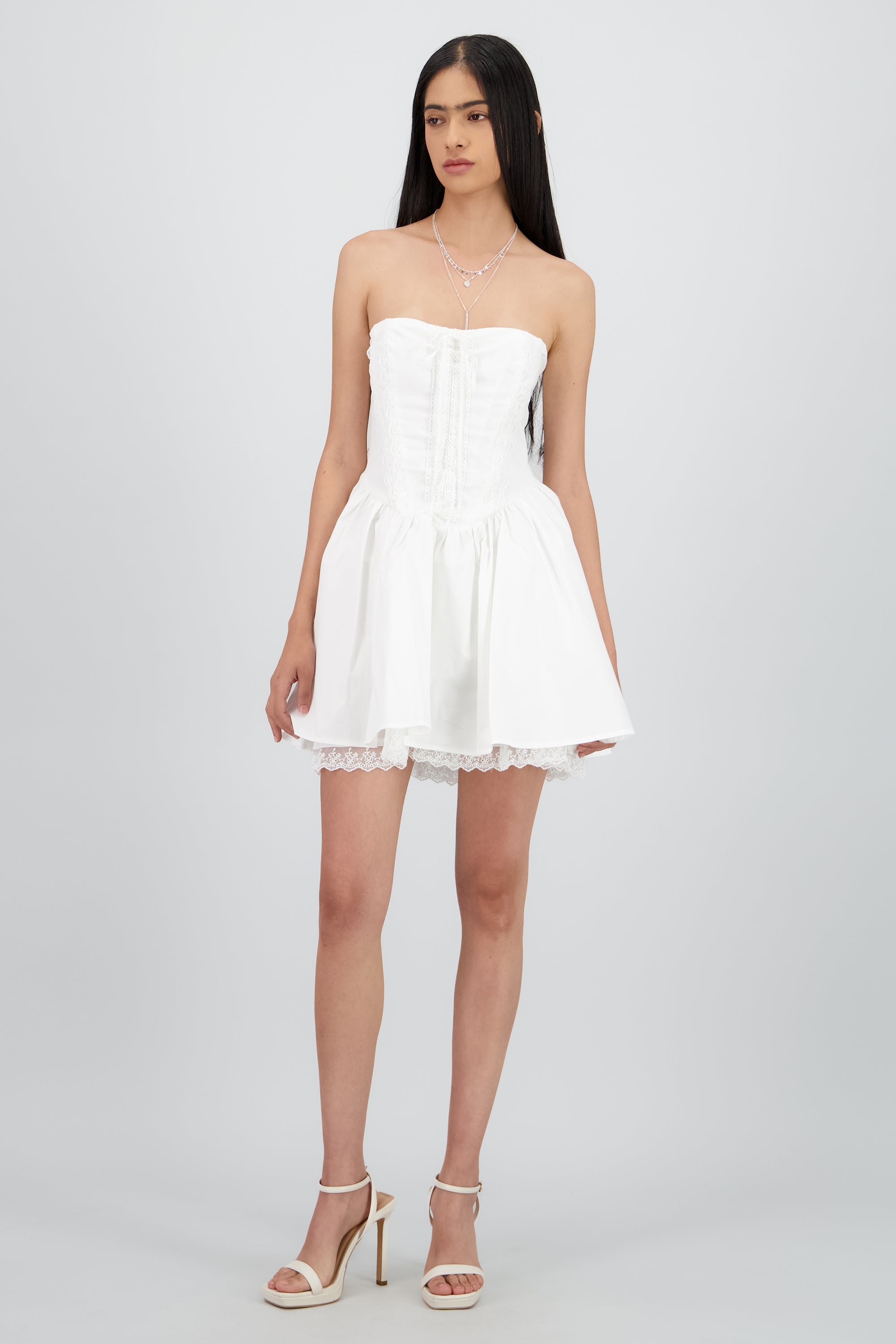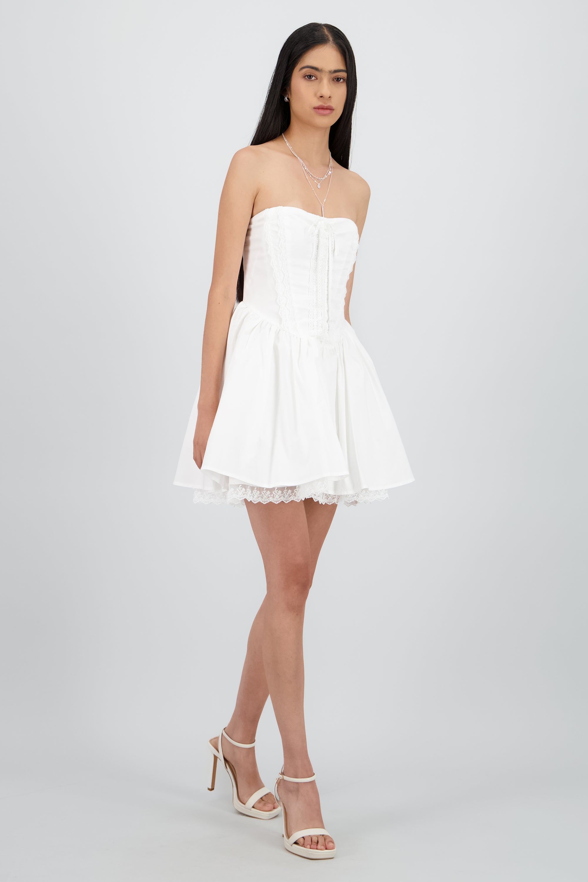 Vestido mini popelina detalle encaje corset Hypste